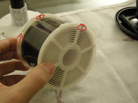 Il negativo arriva così ad un restringimento della spirale, di solito è presente una pallina d’acciaio (nei cerchietti), che fa da freno, in modo che il rullino non si svolga.